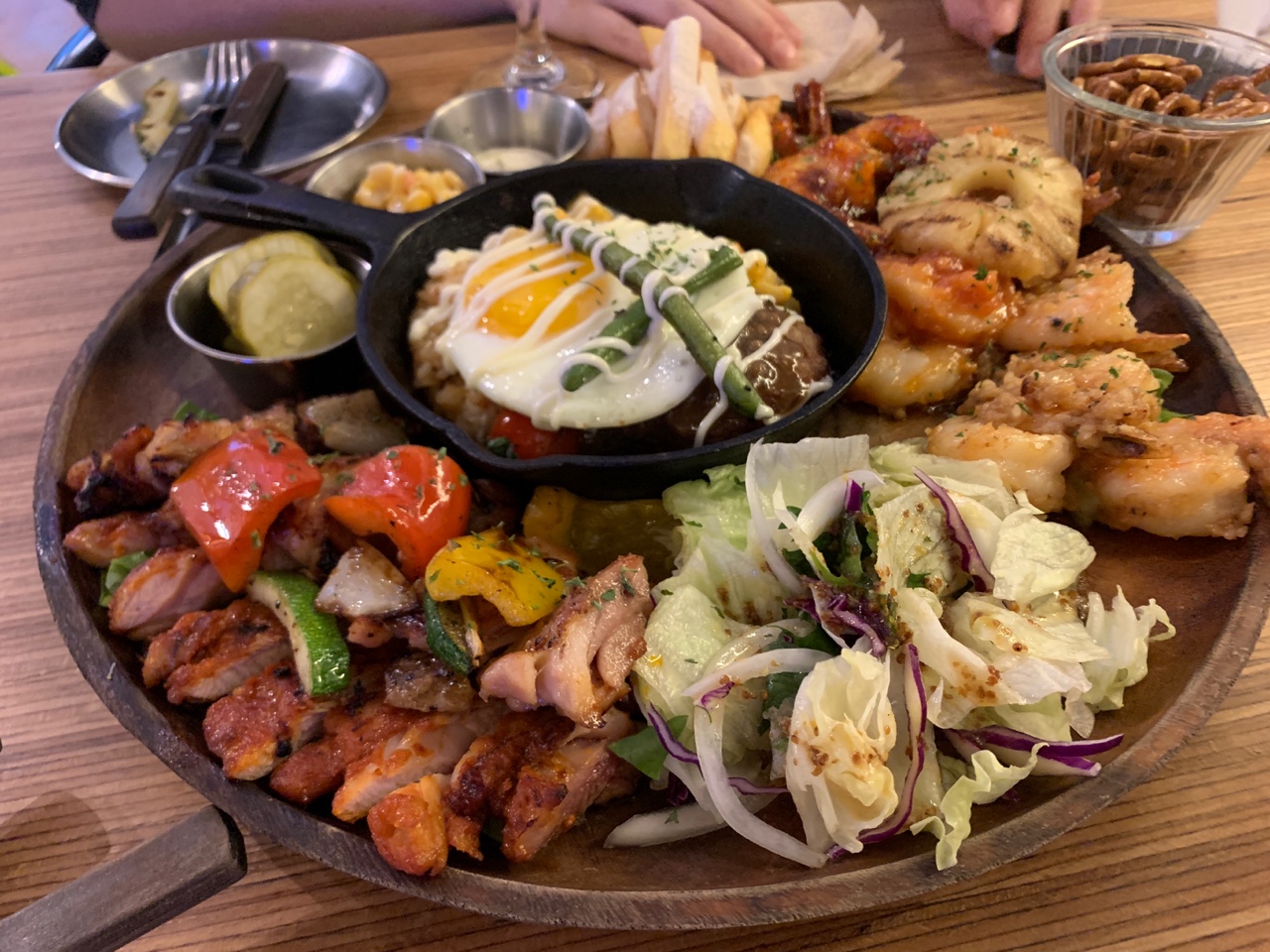 웨이브스 플레이터는 감튀, 새우, 함박, 닭꼬치등이 있었는데 나는 새우랑 함박이 가장 맛있었다. 생각보다 양도 많고 맛있었다. 사실 스파이스 누들이 정말 존맛이였는데 사진을 못 찍었다.
