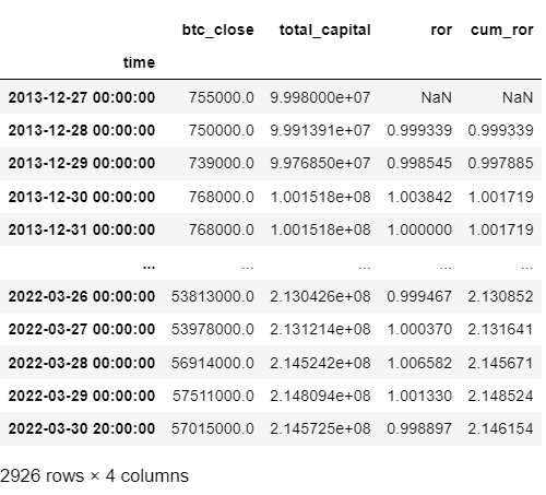 ror_df = pd.DataFrame({"btc_close" : btc_close_price_list, "total_capital" : total_capital_list}, index = btc_df.index)