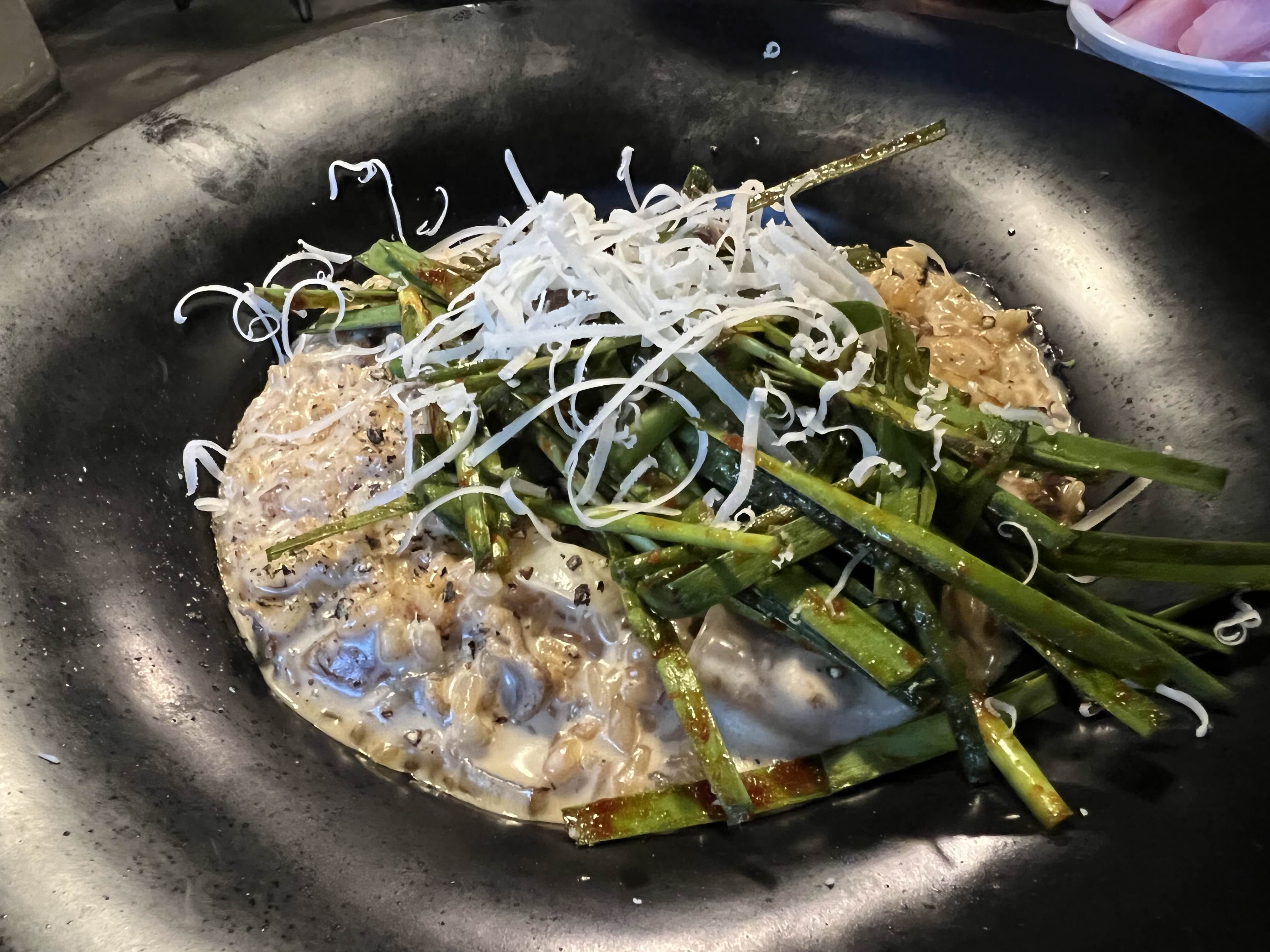 페어링 리조또는 위에 부추가 올라가고 삼겹살이 있는데 한식을 리조또로 재해석한 음식이였다. 너무 느끼하지도 않고 맛있었다.