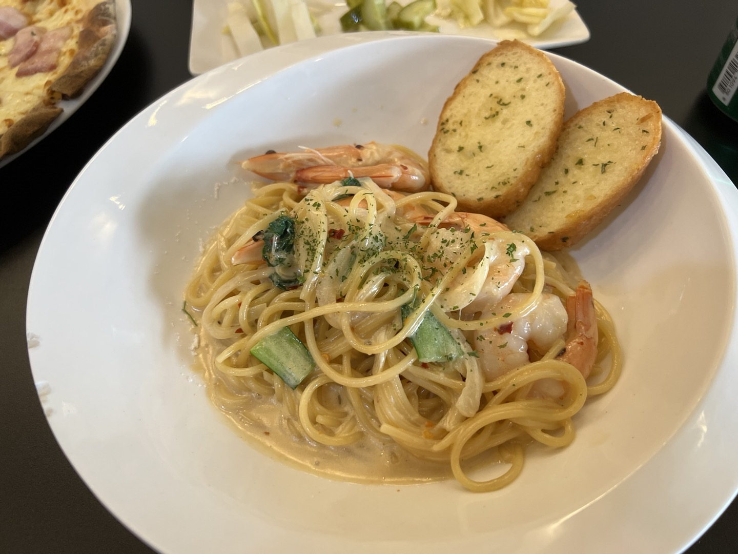 쉬림프핫치킨파스타는 생각보다 맵지 않고 크리미하였다. 새우도 적당히 있어 맛있게 먹었다.