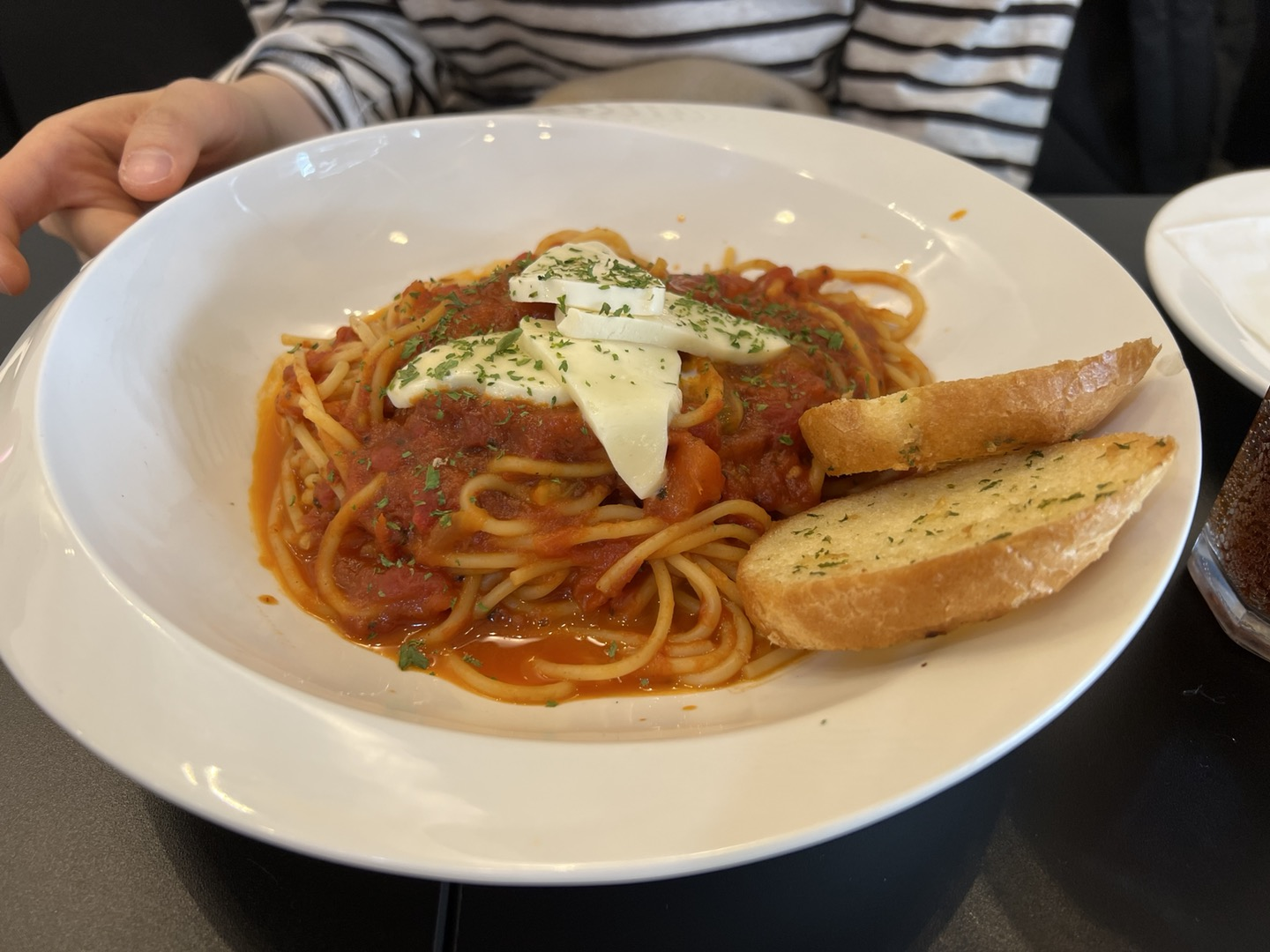여자친구는 토마토파스타를 시켰는데 개인적으로는 평범한 토마토파스타맛이라고 하였다. 여기는 토마토보다는 크림이 더 맛있는거 같다.