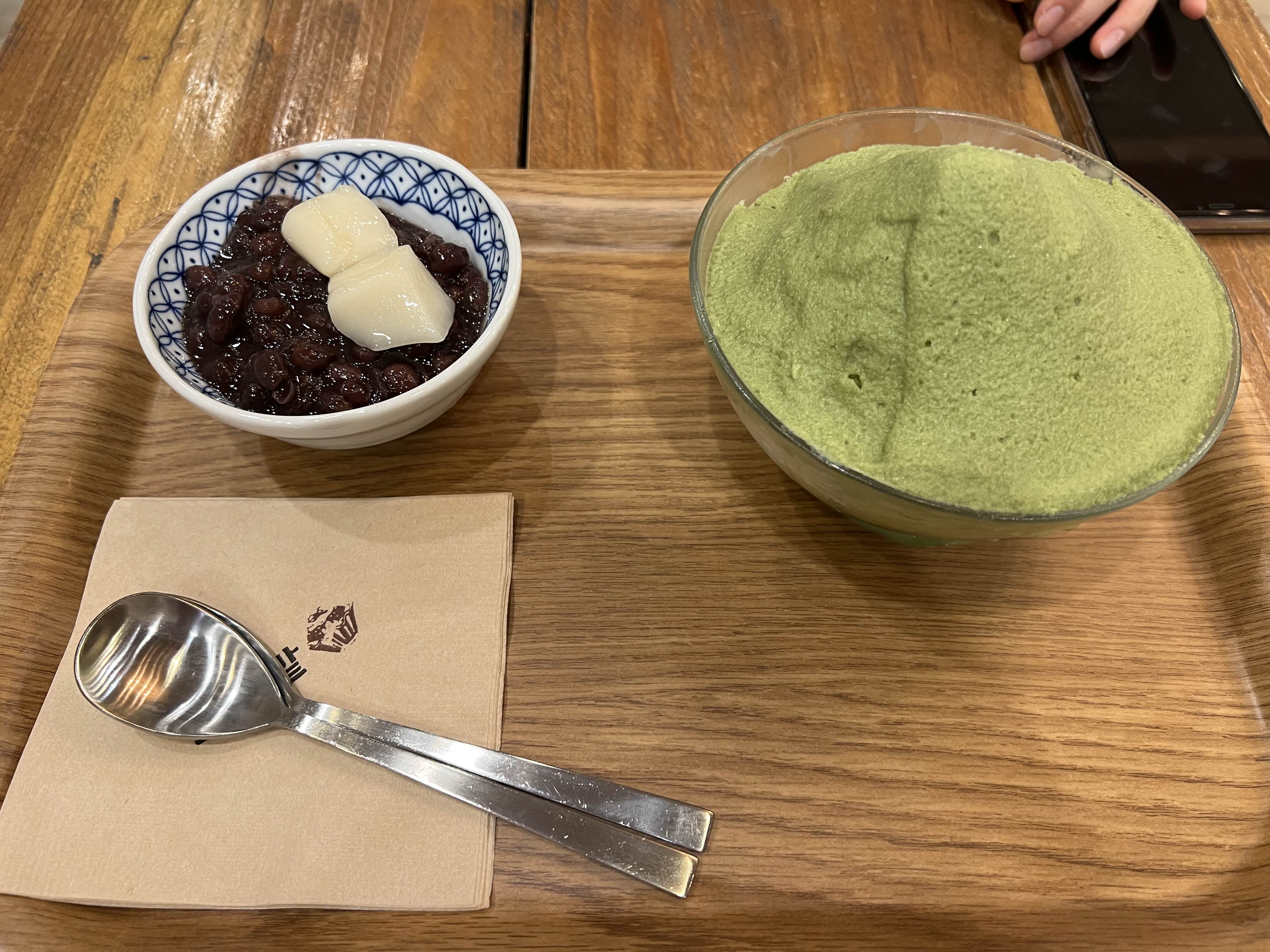 빙수는 4가지가 있다. 그중 베스트는 밀크빙수인데 우리는 녹차빙수를 시켰다.