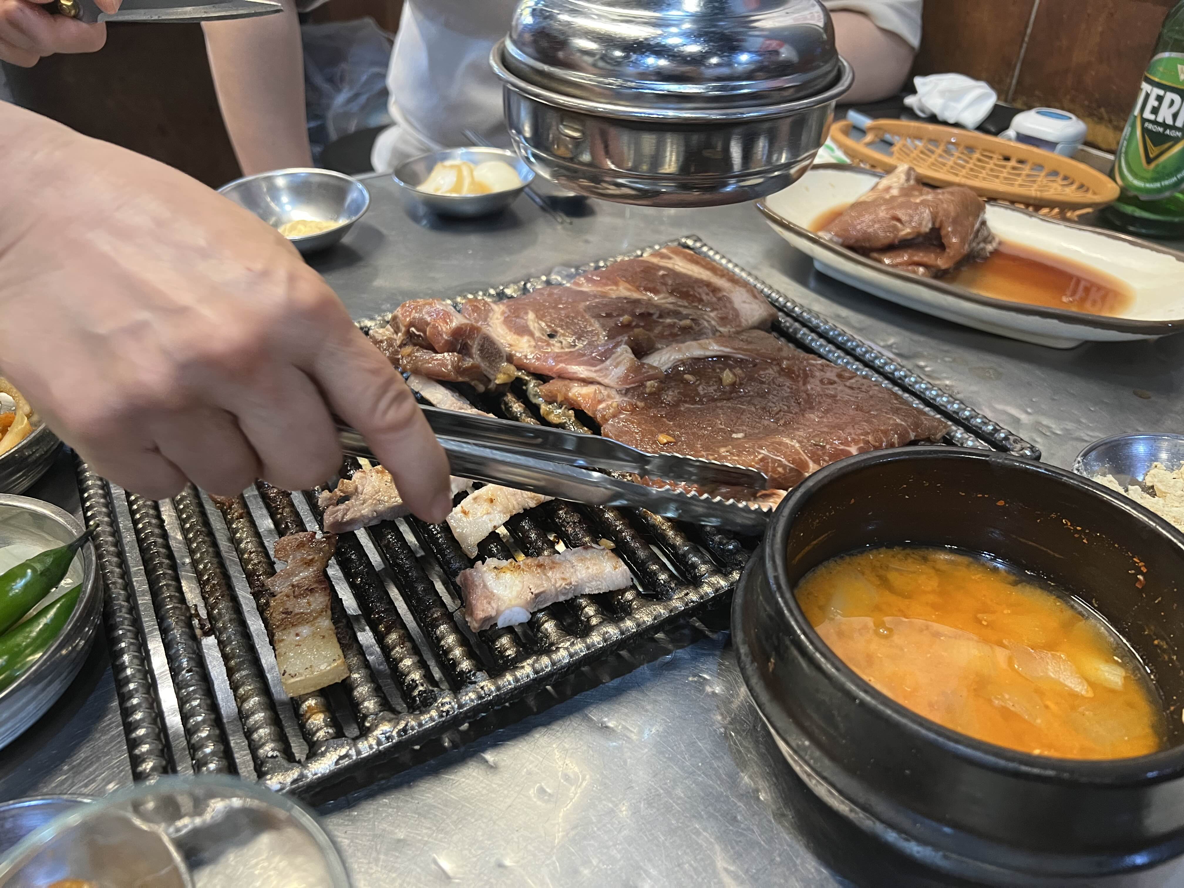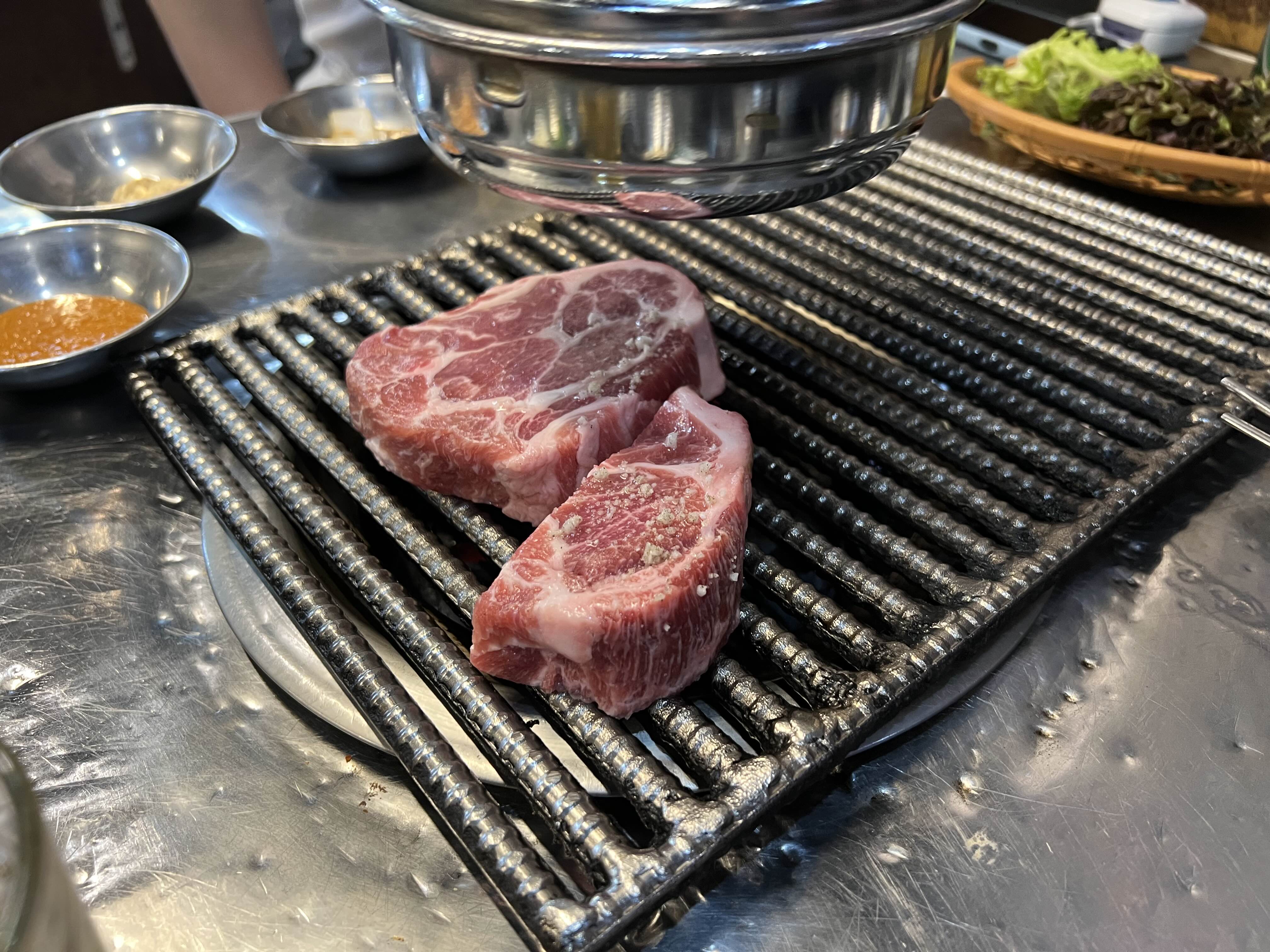 개인적으로 여기는 삼겹살보다는 목살이 훨씬 맛있다. 솔직히 삼겹살은 퀄리티가 너무 별로였는데 목살은 두툼하고 처음에 직접 구워주신다. (하지만 목살은 최소 2인분은 시켜야 한다)