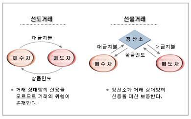 똑같은 거래라도 거래소가 보장하면 선물거래, 거래소가 보장하지 않으면 선도거래이다.